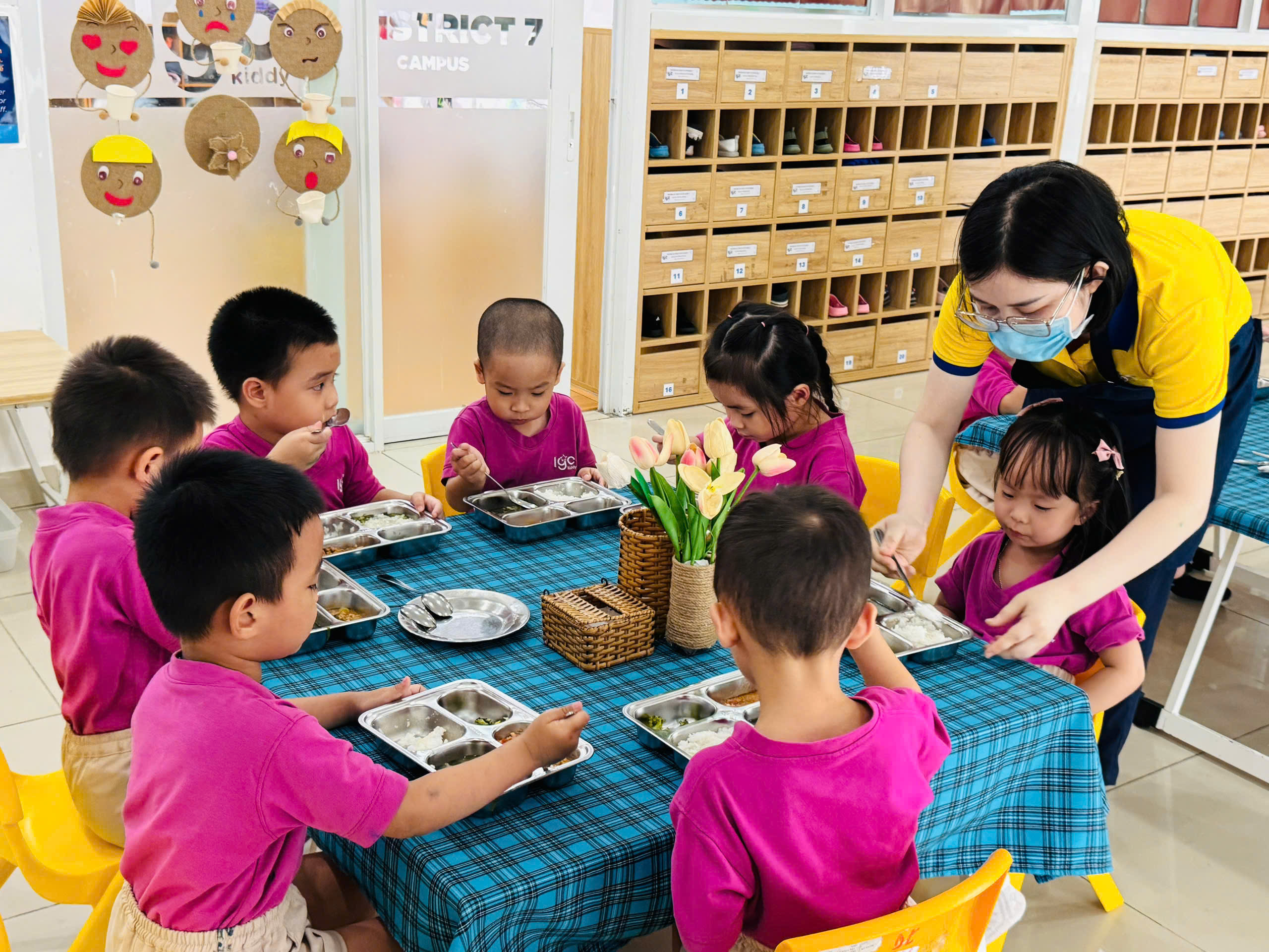 Để có những hình thức tổ chức ăn uống đa dạng và để trẻ biết trân trọng những nét văn hóa của người Việt Nam, IGC Kiddy đem những nét đặc trưng của bữa ăn gia đình vào giờ ăn của trẻ. Ở đây, trẻ sẽ cùng ngồi quây quần với nhau, trên bàn ăn sẽ được từng trẻ chuẩn bị đẹp mắt những món cơm, canh, mặn. Trẻ cùng ngồi với nhau, biết mời nhau dùng cơm, biết lấy cơm giúp bạn, và đặc biệt trẻ sẽ được hướng dẫn để sử dụng đũa thành thục trong bữa ăn.