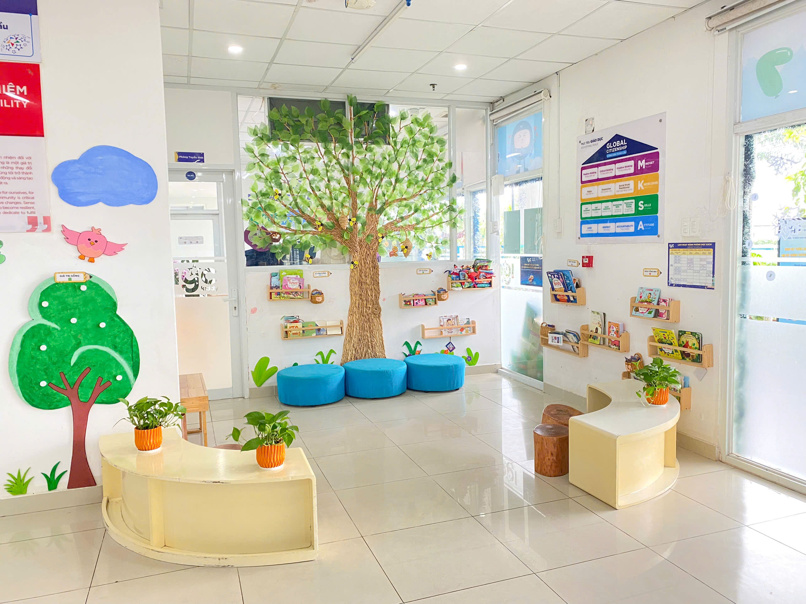 Trẻ tham gia hoạt động My Reading Tree tại trường trong một không gian yên tĩnh, đảm bảo ánh sáng. Các kệ sách được thiết kế ngang tầm mắt và vừa tầm với của trẻ. Mỗi cuốn sách có thẻ sách tương ứng và được phân loại theo từng chủ đề khác nhau. Trong mỗi phòng đọc sách đều có “cây sách” với những nhánh cây tương ứng với từng chủ đề, “cây sách” là nơi giáo viên có thể nắm rõ được thể loại sách yêu thích của từng trẻ để có thể tiếp tục nuôi dưỡng niềm đam mê đọc sách dựa trên sở thích và sự hứng thú của mỗi trẻ.