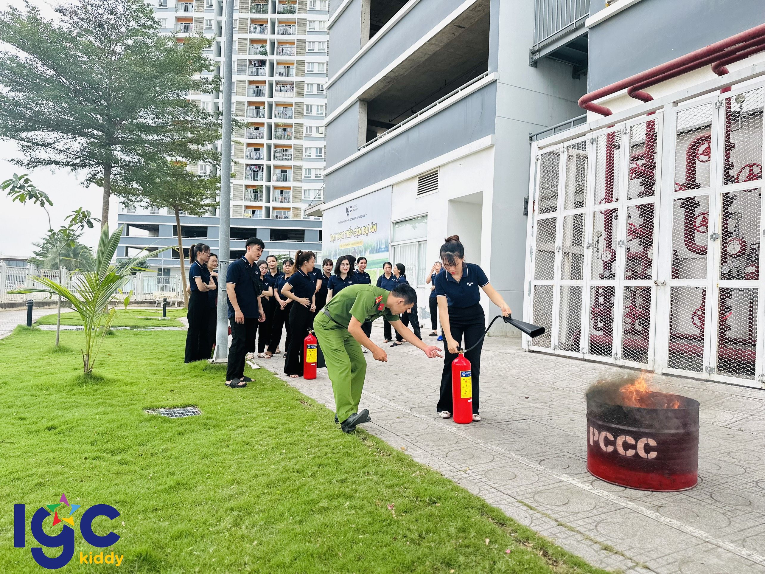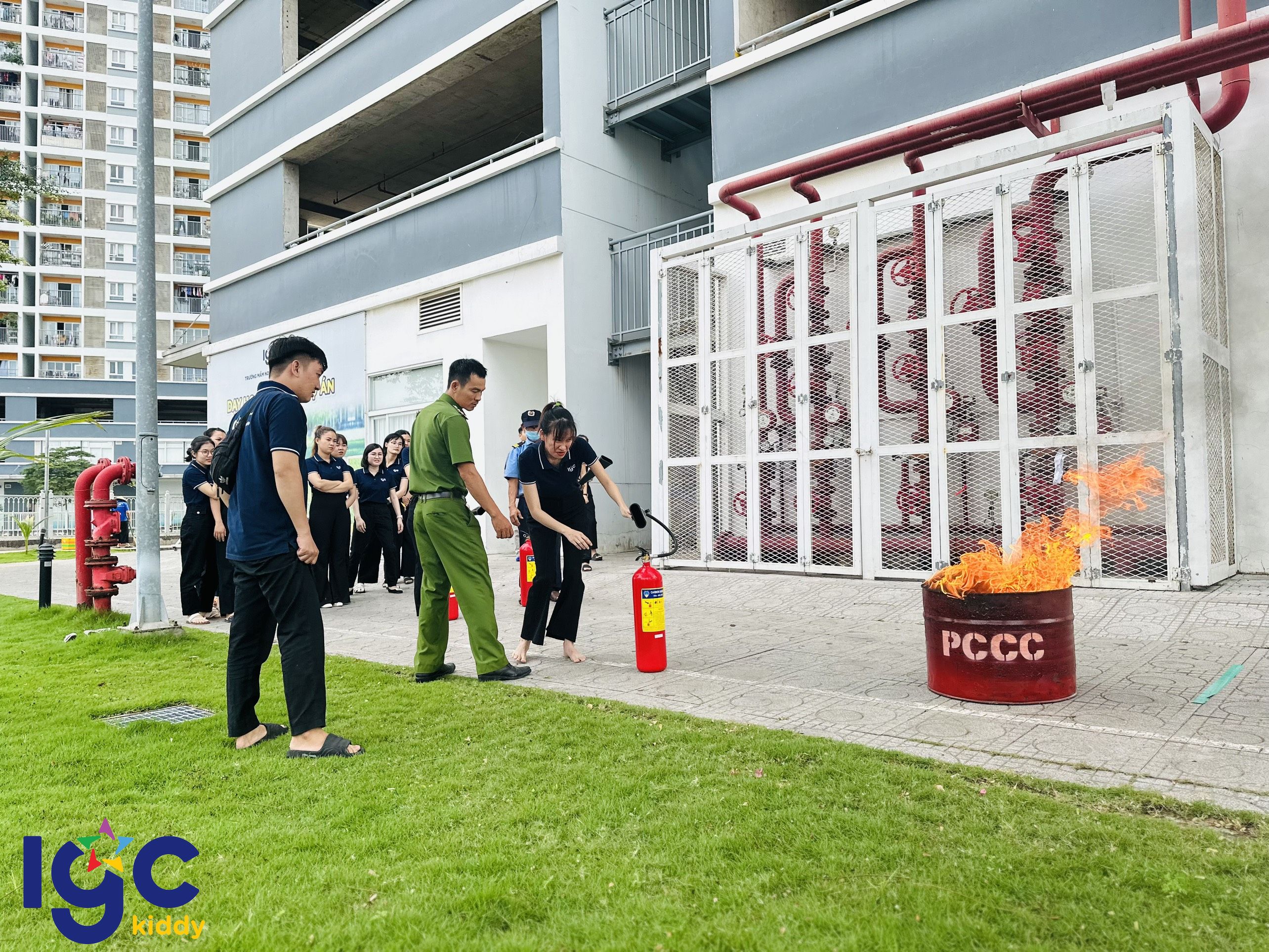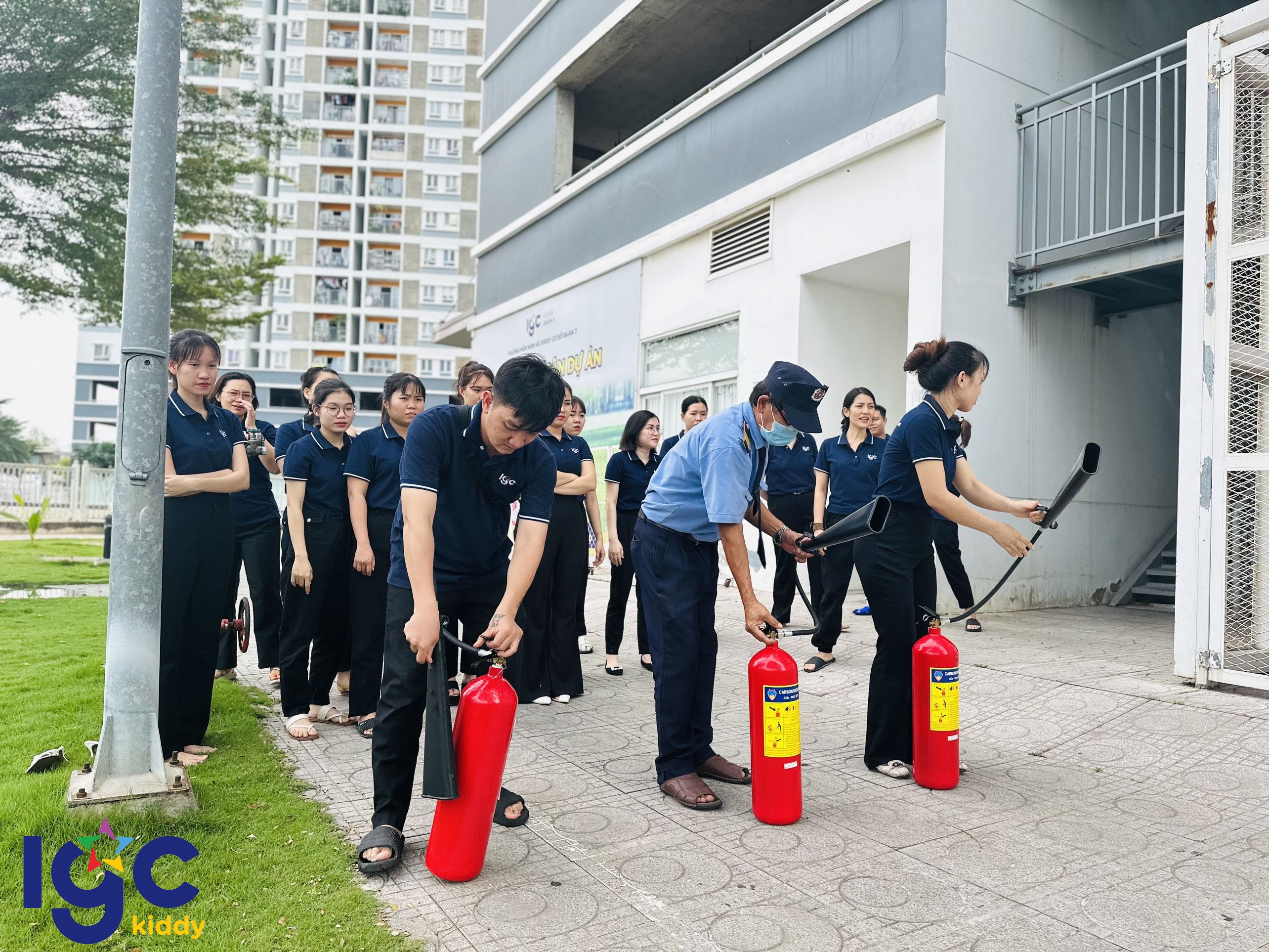 Trường Mầm non IGC Kiddy cơ sở Quận 7 đã tổ chức buổi Tập huấn & Diễn tập Phòng cháy chữa cháy. Đây là hoạt động định kỳ được nhà trường tổ chức thường niên nhằm liên tục bồi dưỡng kiến thức và kỹ năng cho CBGV - NV về phòng cháy và chữa cháy. 🔥Tại buổi Tập huấn & Diễn tập PCCC, với sự hướng dẫn từ Phòng Cảnh sát PCCC & CNCH Công an Quận 7, đội ngũ CBGV - NV đã được trang bị thêm nhiều kiến thức và kỹ năng cần thiết để ứng phó với tình huống khẩn cấp về Phòng cháy chữa cháy trong môi trường mầm non. 🔥Trong buổi diễn tập, CBGV - NV đã được hướng dẫn và thực hành cách sử dụng bình chữa cháy và các biện pháp an toàn khác trong trường hợp xảy ra hỏa hoạn. Điều này giúp nhà trường tự tin hơn trong việc đảm bảo an toàn cho các bé. 🍀Với tất cả sư nỗ lực và chỉnh chu trong từng hoạt động, luôn quan tâm đặc biệt đến việc bảo vệ trẻ em, nhà trường đã tạo ra một môi trường học tập an toàn và đáng tin cậy.