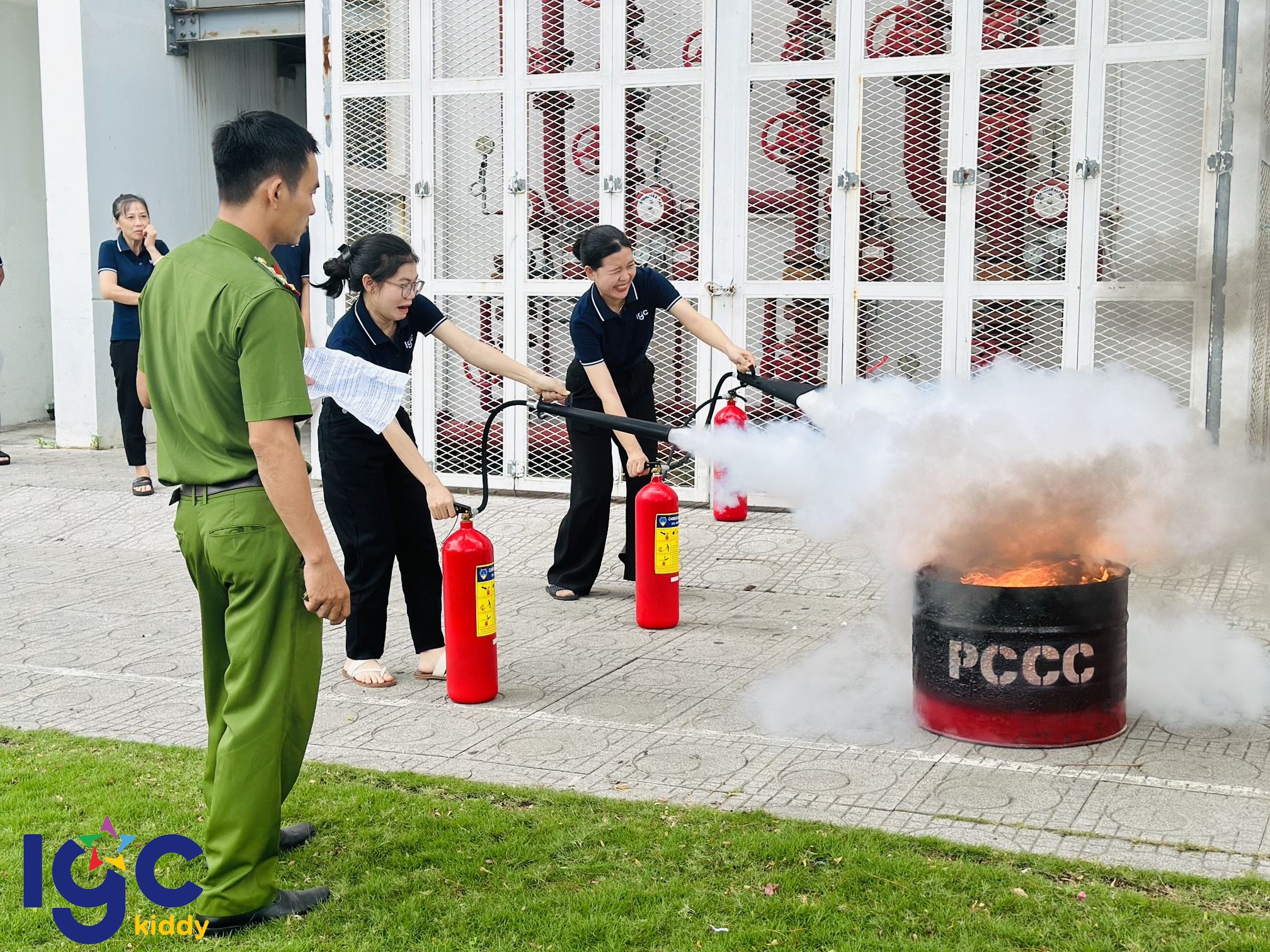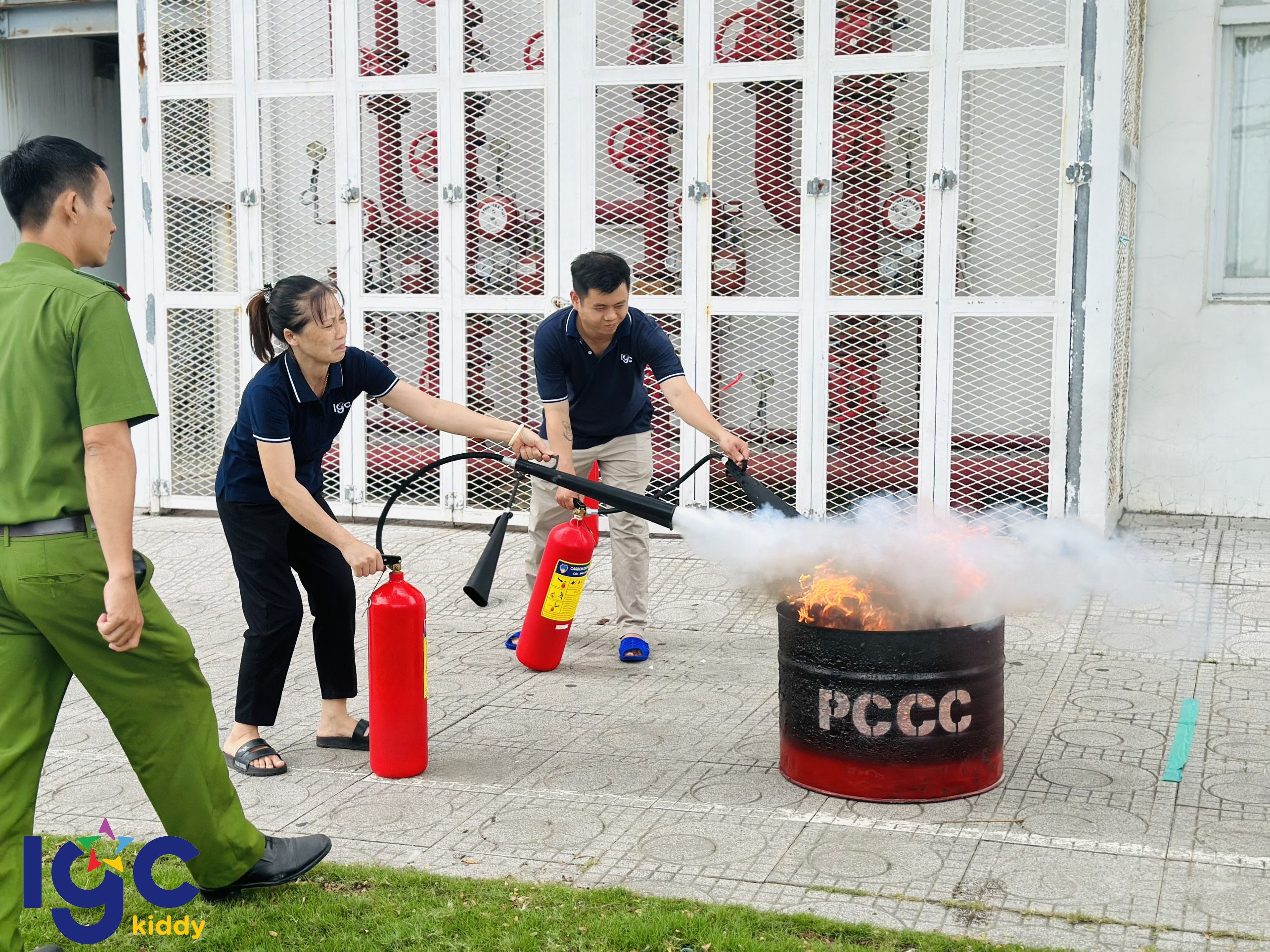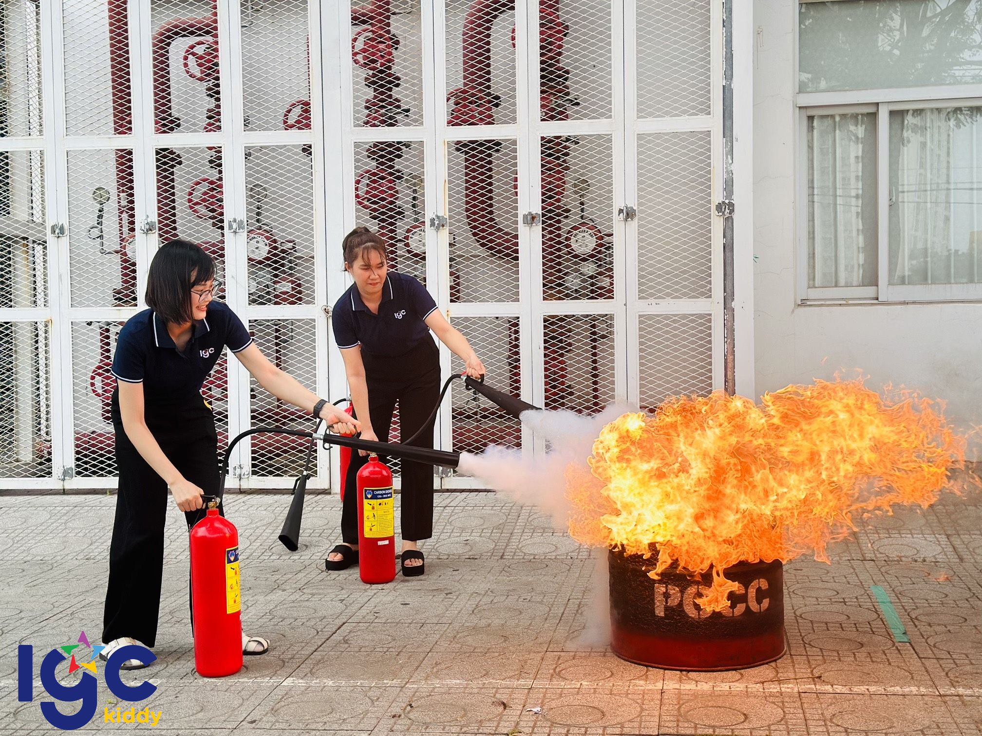 Trường Mầm non IGC Kiddy cơ sở Quận 7 đã tổ chức buổi Tập huấn & Diễn tập Phòng cháy chữa cháy. Đây là hoạt động định kỳ được nhà trường tổ chức thường niên nhằm liên tục bồi dưỡng kiến thức và kỹ năng cho CBGV - NV về phòng cháy và chữa cháy. 🔥Tại buổi Tập huấn & Diễn tập PCCC, với sự hướng dẫn từ Phòng Cảnh sát PCCC & CNCH Công an Quận 7, đội ngũ CBGV - NV đã được trang bị thêm nhiều kiến thức và kỹ năng cần thiết để ứng phó với tình huống khẩn cấp về Phòng cháy chữa cháy trong môi trường mầm non. 🔥Trong buổi diễn tập, CBGV - NV đã được hướng dẫn và thực hành cách sử dụng bình chữa cháy và các biện pháp an toàn khác trong trường hợp xảy ra hỏa hoạn. Điều này giúp nhà trường tự tin hơn trong việc đảm bảo an toàn cho các bé. 🍀Với tất cả sư nỗ lực và chỉnh chu trong từng hoạt động, luôn quan tâm đặc biệt đến việc bảo vệ trẻ em, nhà trường đã tạo ra một môi trường học tập an toàn và đáng tin cậy.