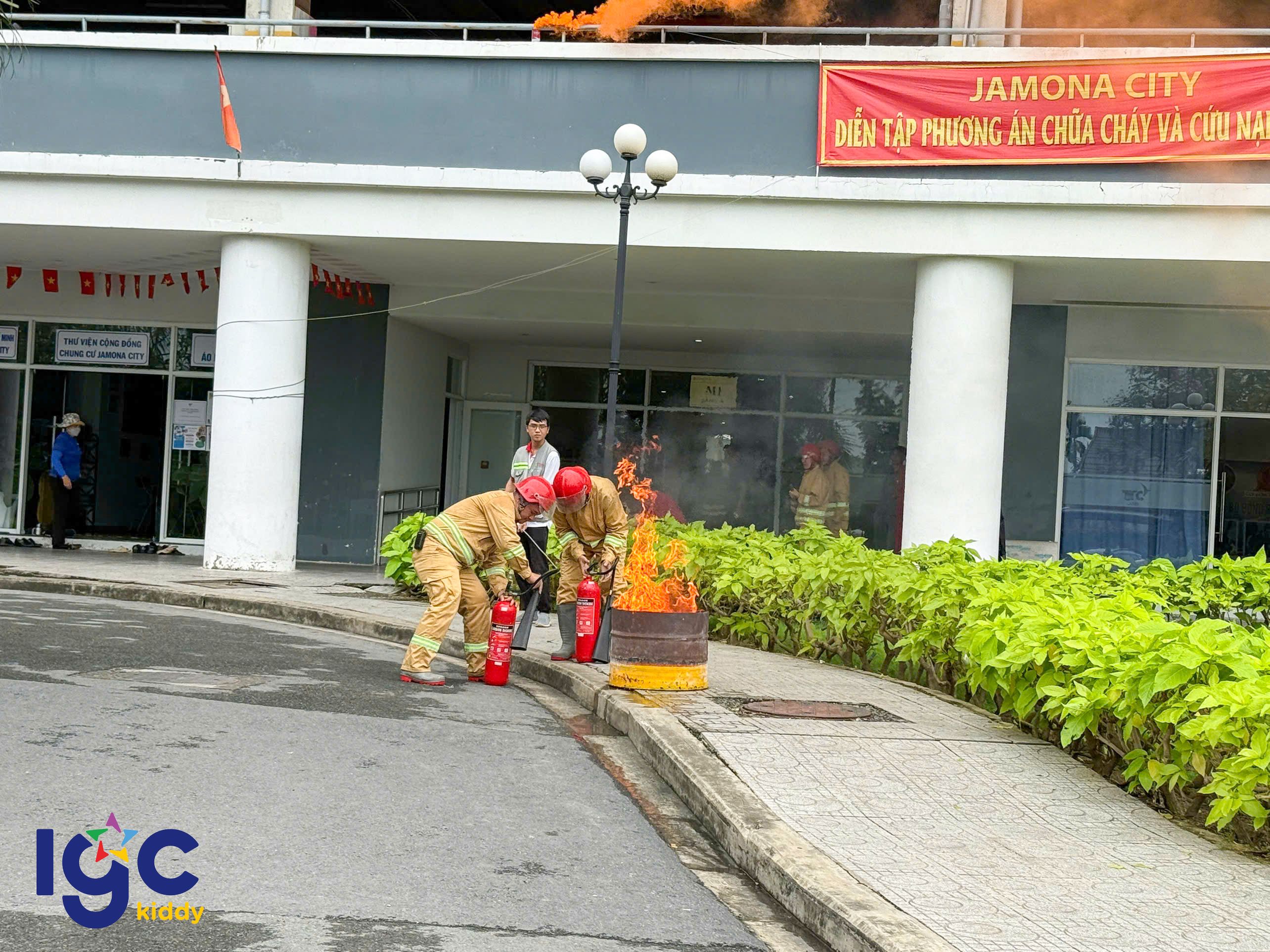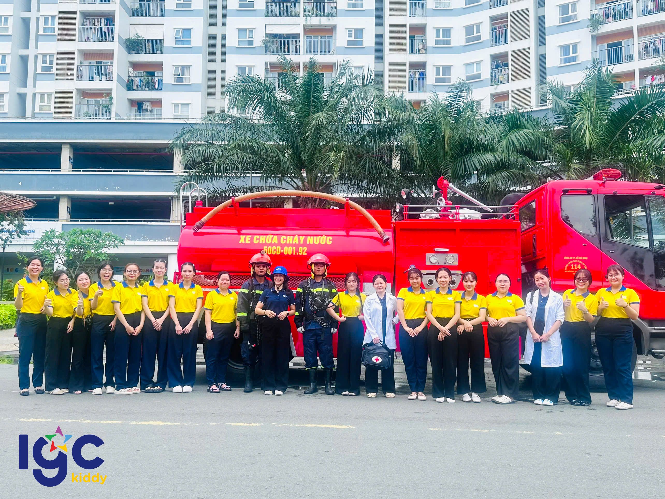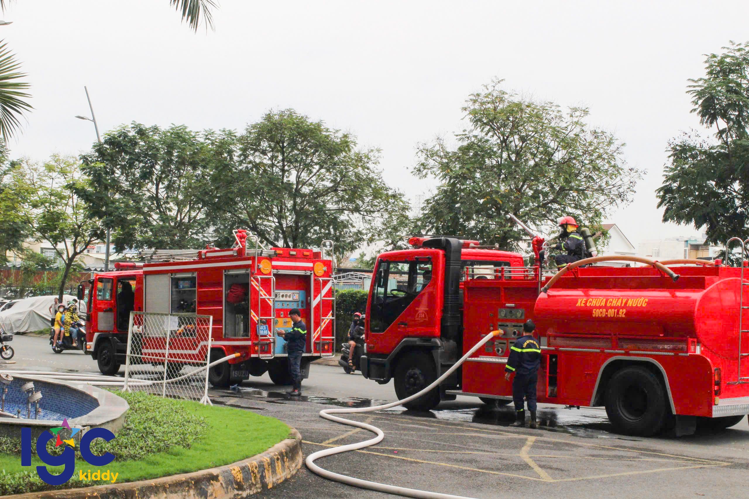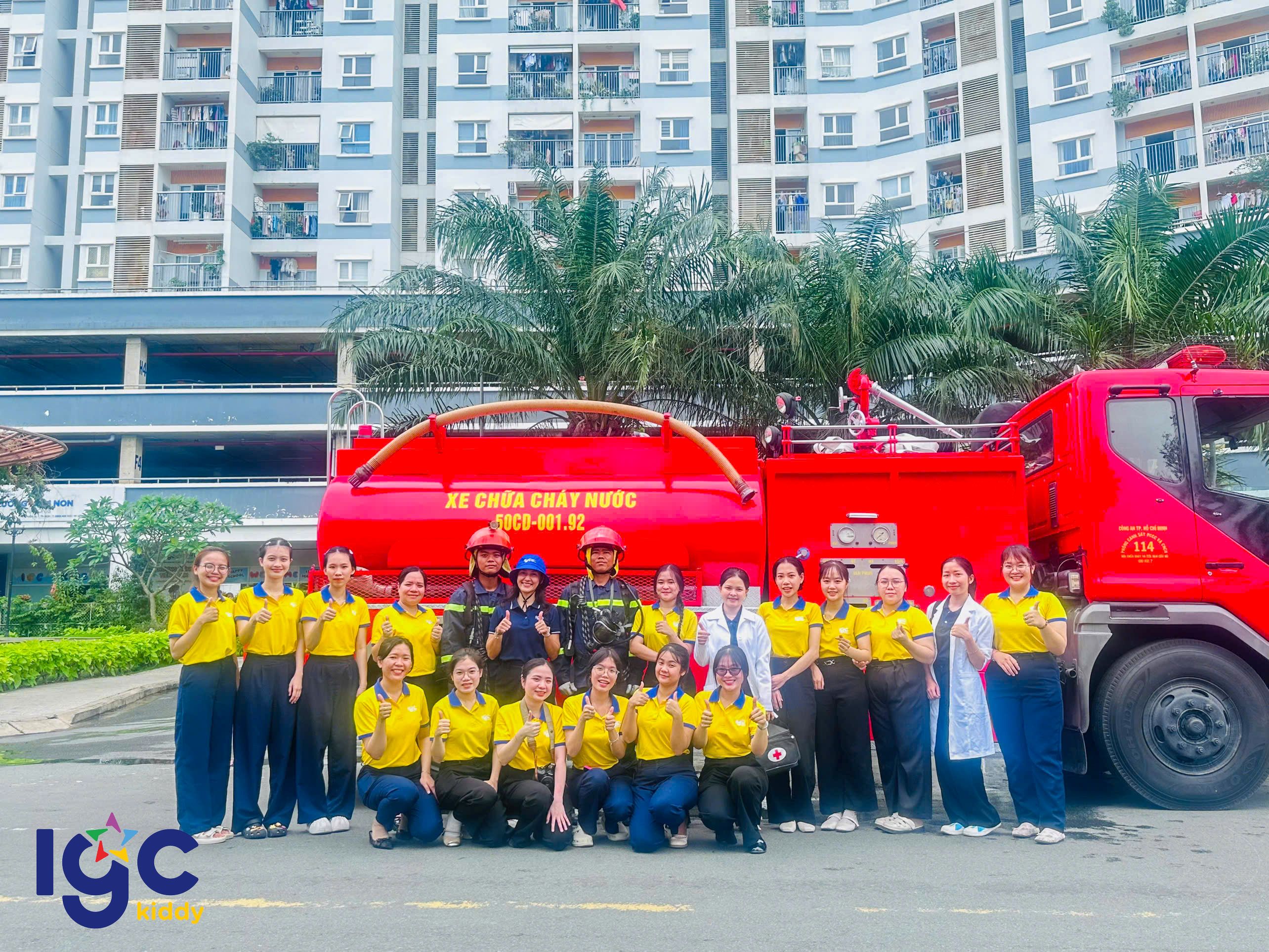 Trường IGC Kiddy Quận 7 phối hợp cùng Công an Phường Phú Thuận, Đội chữa cháy, cứu nạn cứu hộ khu vực và Ban quản lý Chung cư JamonaCity tổ chức buổi diễn tập Phòng cháy chữa cháy và cứu nạn cứu hộ định kỳ.