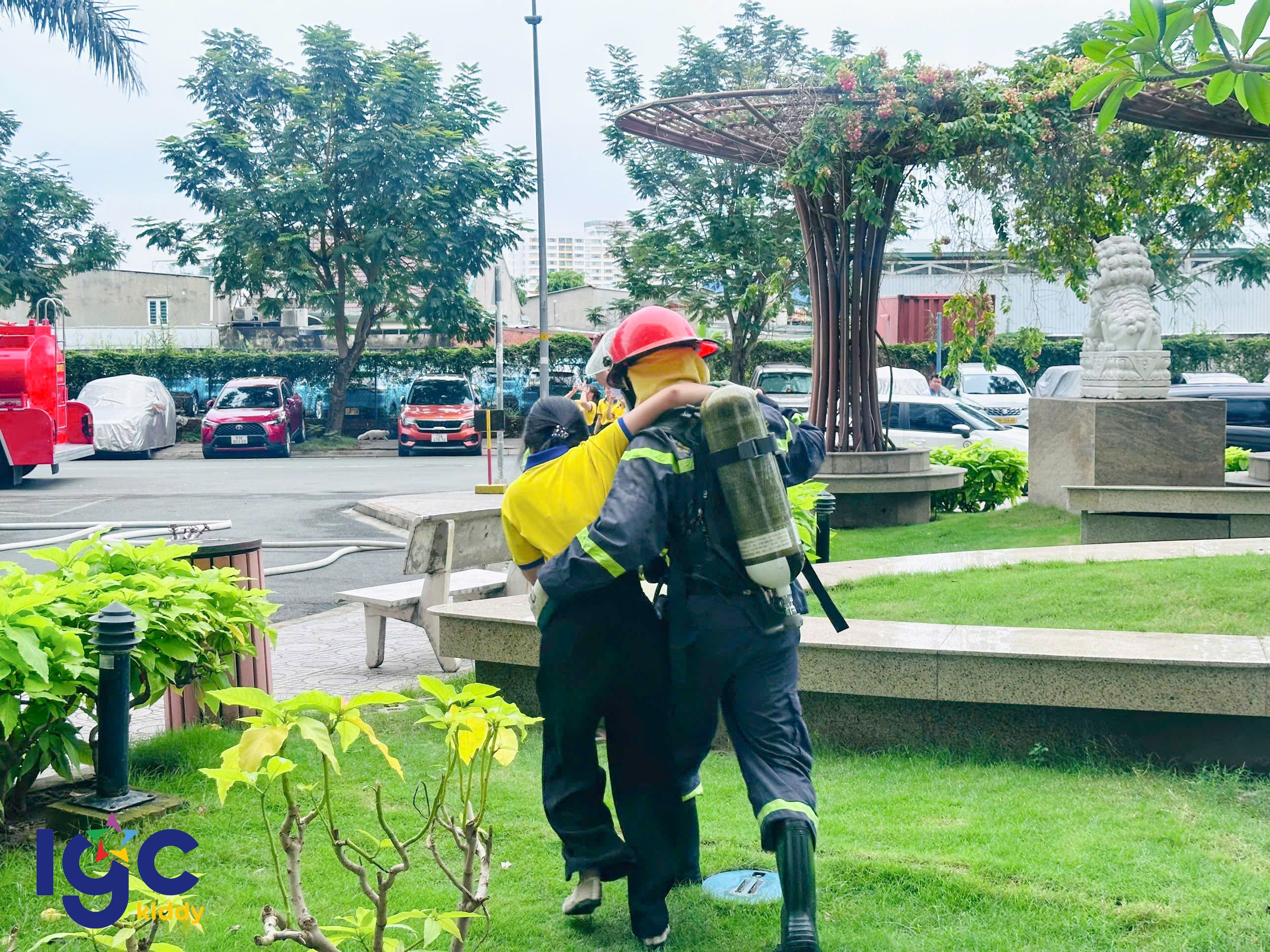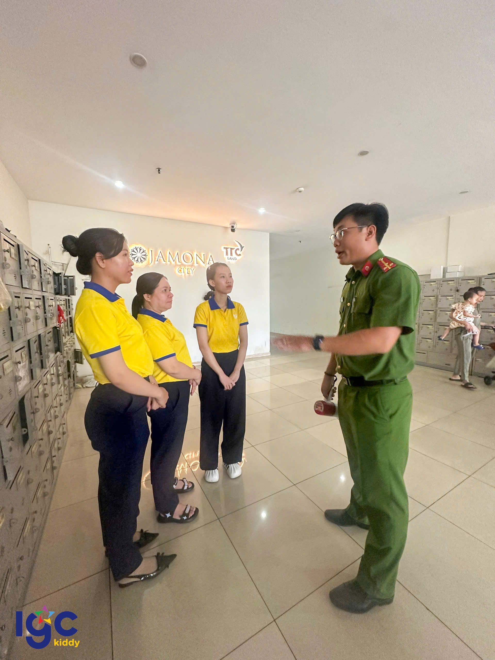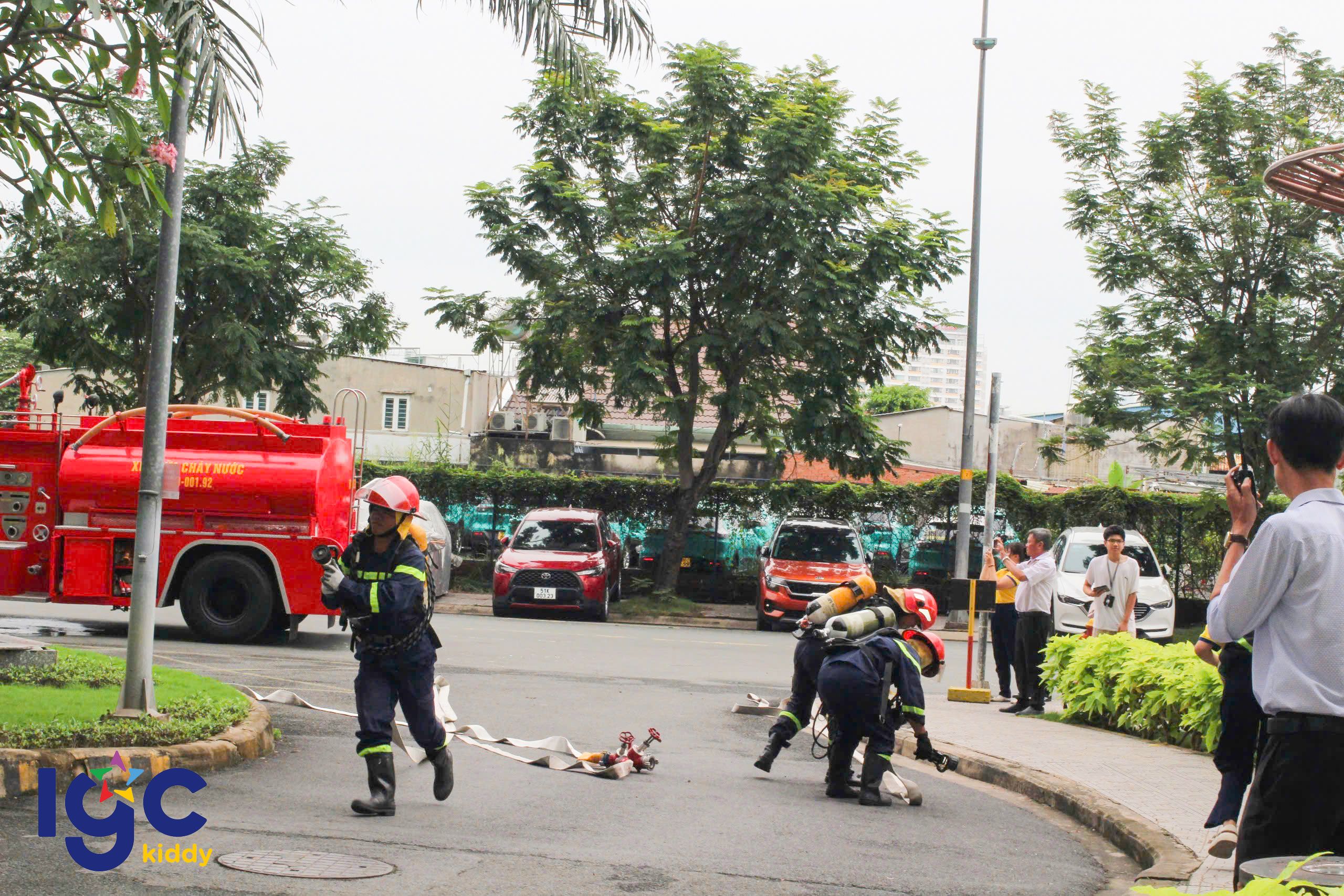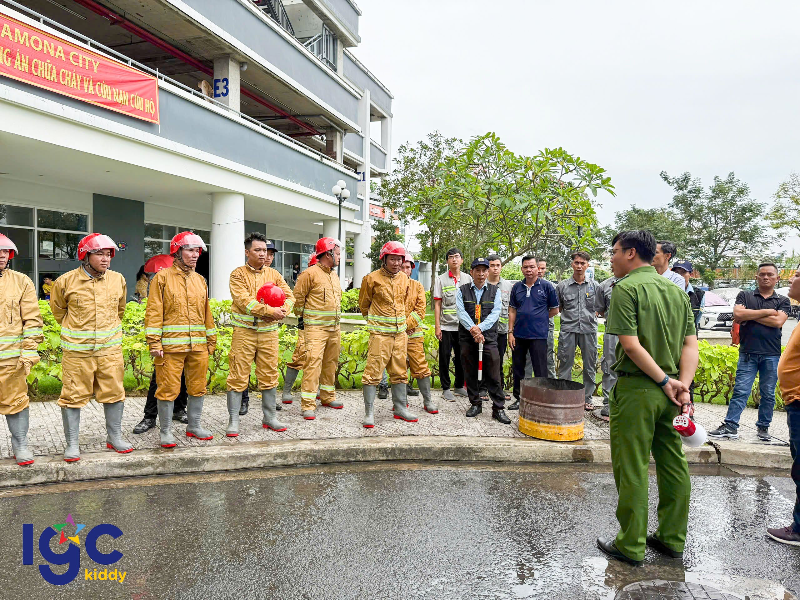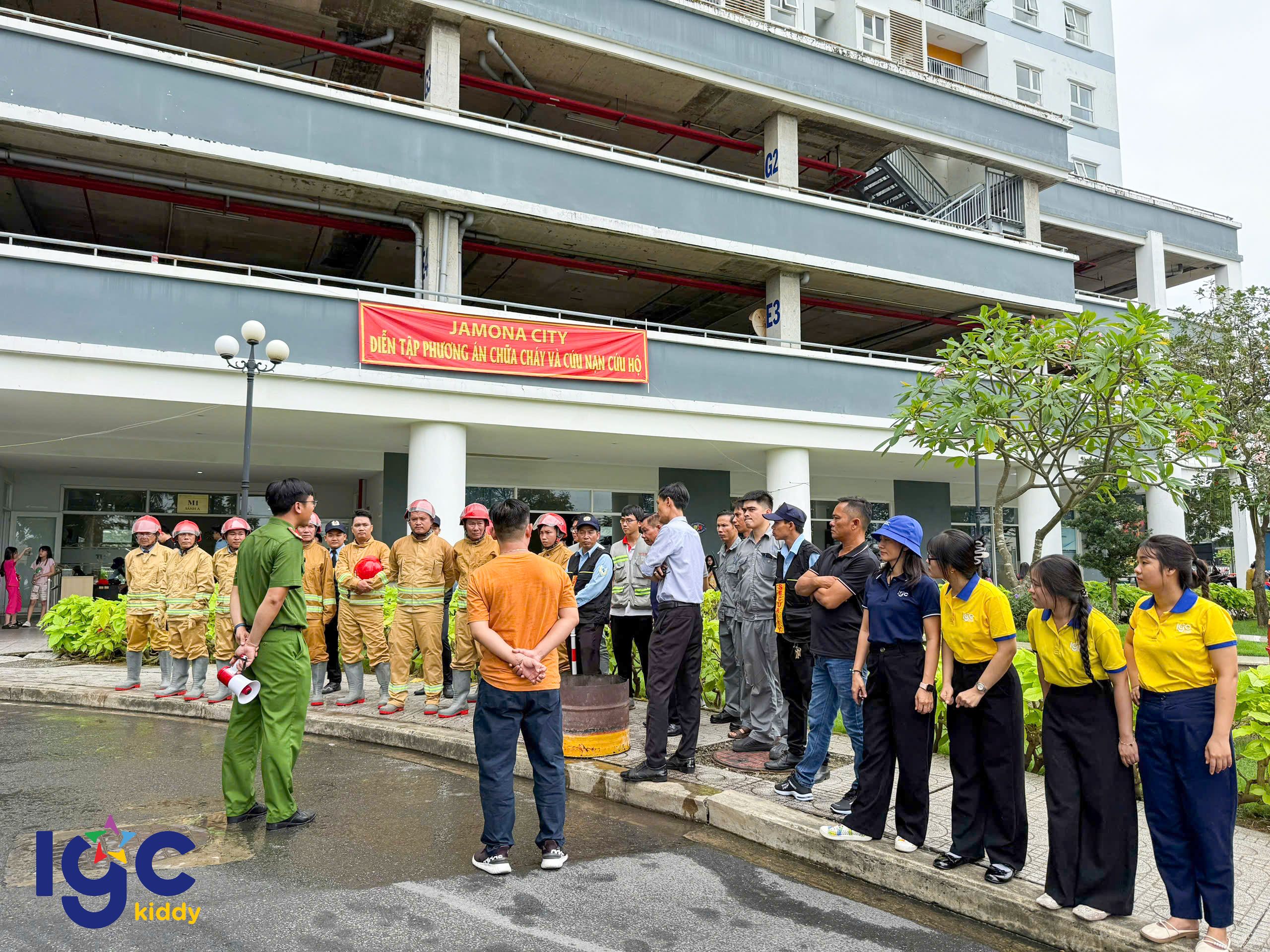 Trường IGC Kiddy Quận 7 phối hợp cùng Công an Phường Phú Thuận, Đội chữa cháy, cứu nạn cứu hộ khu vực và Ban quản lý Chung cư JamonaCity tổ chức buổi diễn tập Phòng cháy chữa cháy và cứu nạn cứu hộ định kỳ.