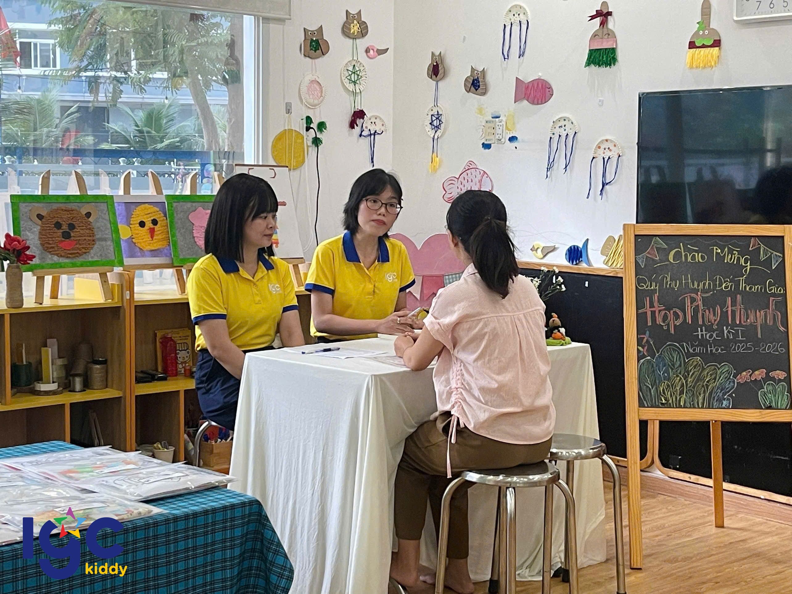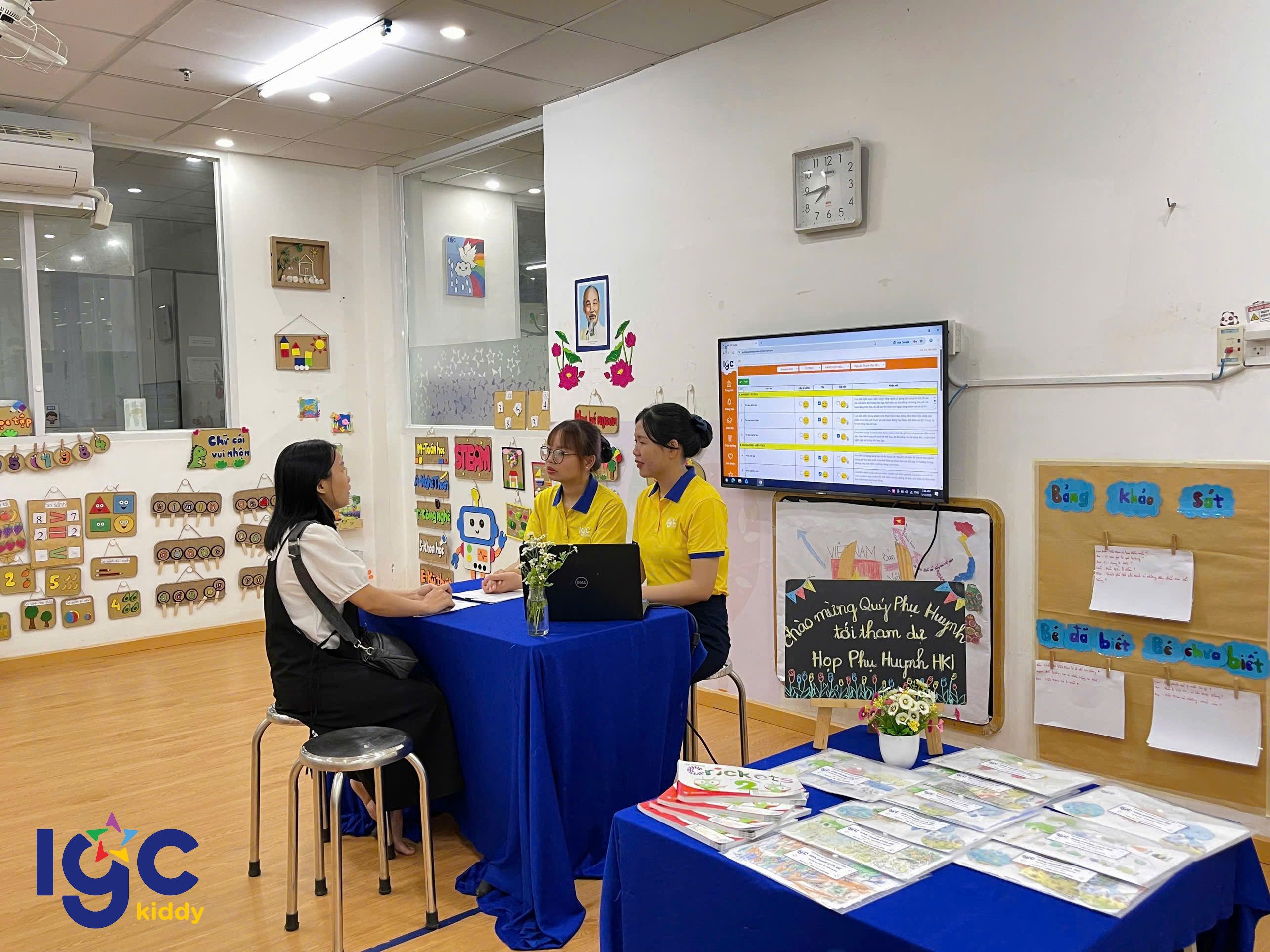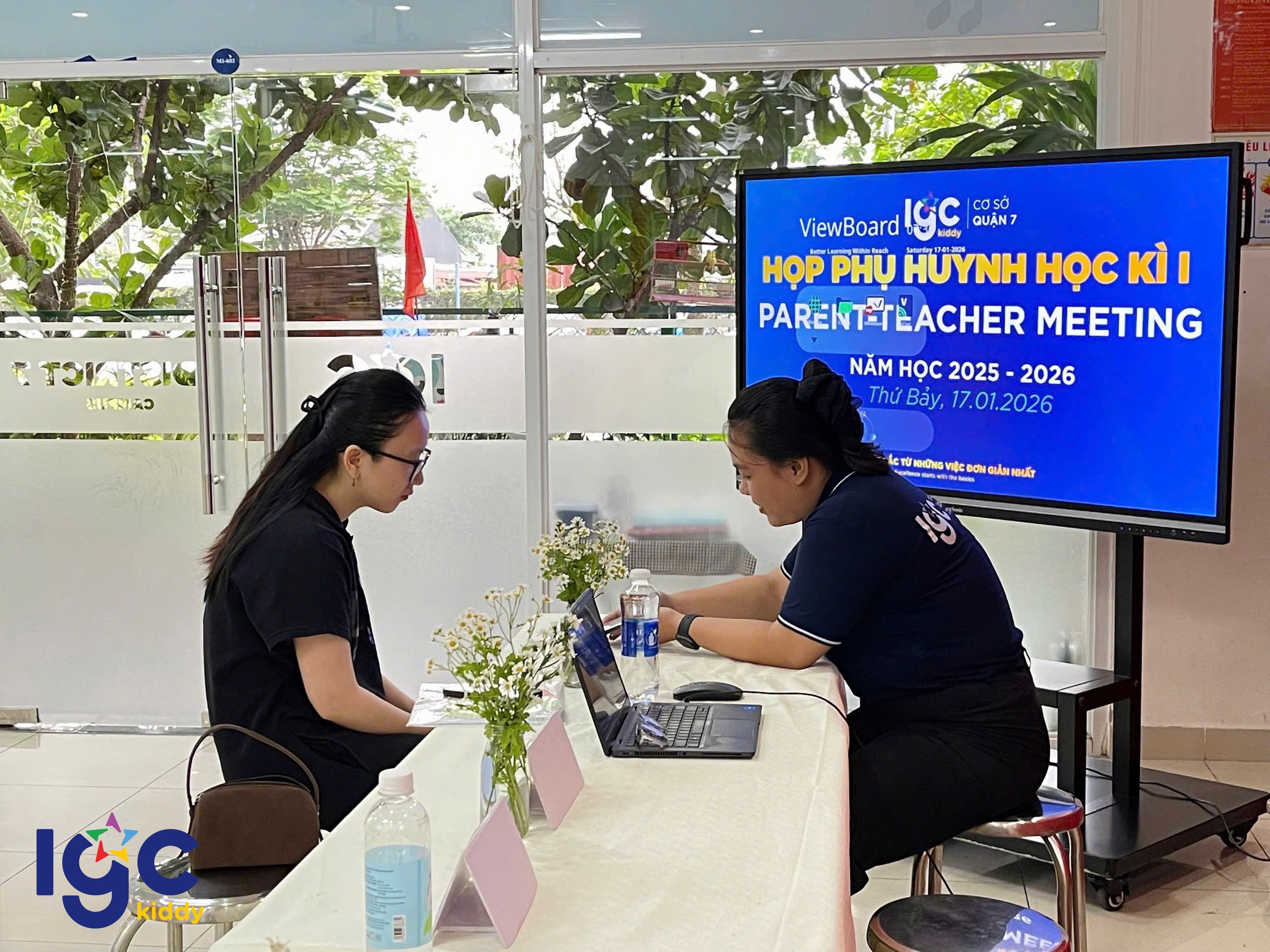 Trường IGC Kiddy – Cơ sở Quận 7 xin trân trọng cảm ơn Quý Cha Mẹ Học Sinh đã dành thời gian quý báu đến tham dự buổi họp Phụ huynh Học sinh Học kỳ I vừa qua 💙 Buổi họp không chỉ là dịp để Giáo viên chủ nhiệm chia sẻ cụ thể về quá trình học tập – rèn luyện – sự tiến bộ của từng con, mà còn là cơ hội để nhà trường lắng nghe những chia sẻ, mong muốn từ phía Phụ huynh, giải đáp chi tiết các thắc mắc, giúp ba mẹ thêm an tâm khi gửi gắm con yêu tại IGC Kiddy Quận 7 🌱 Nhà trường rất trân trọng những ý kiến đóng góp, chia sẻ chân thành từ Quý Phụ huynh. Đây chính là nguồn động lực để tập thể IGC Kiddy Quận 7 không ngừng hoàn thiện chất lượng chăm sóc – giáo dục, mang đến cho các con một môi trường học tập an toàn, hạnh phúc và giàu trải nghiệm. 🤝 Bên cạnh đó, việc Cha Mẹ trực tiếp gặp gỡ Ban Giám hiệu, Quản lý Chương trình Tiếng Anh, Giáo viên nước ngoài và các thầy cô bộ môn đã góp phần tăng cường sự kết nối – minh bạch – đồng hành giữa nhà trường và gia đình. IGC Kiddy Quận 7 tin rằng, với sự đồng hành và phối hợp chặt chẽ từ Quý Phụ huynh, các con sẽ tiếp tục tự tin – tiến bộ – hạnh phúc và có thêm nhiều trải nghiệm thú vị hơn nữa trong học kỳ II sắp tới. Một lần nữa, Nhà trường xin chân thành cảm ơn sự tin tưởng và đồng hành của Quý Cha Mẹ 💙 Hẹn gặp lại gia đình mình trong những hoạt động tiếp theo của nhà trường!